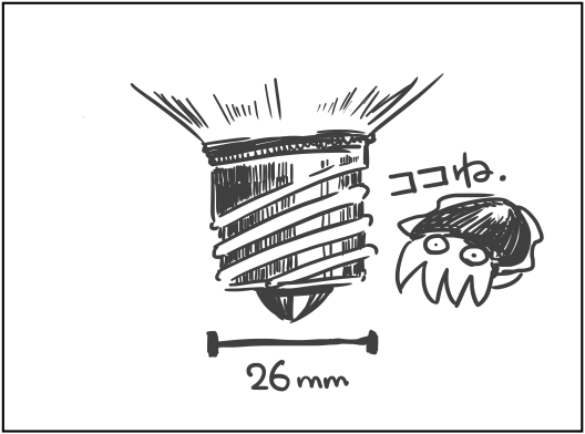 水槽用のLED球で良く見かける「E26」はこのソケット口金の直径が26mmであることを示します。