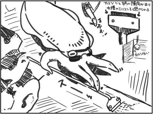 いずれも上から下に擦る動作ですが、水槽には傷がありません。